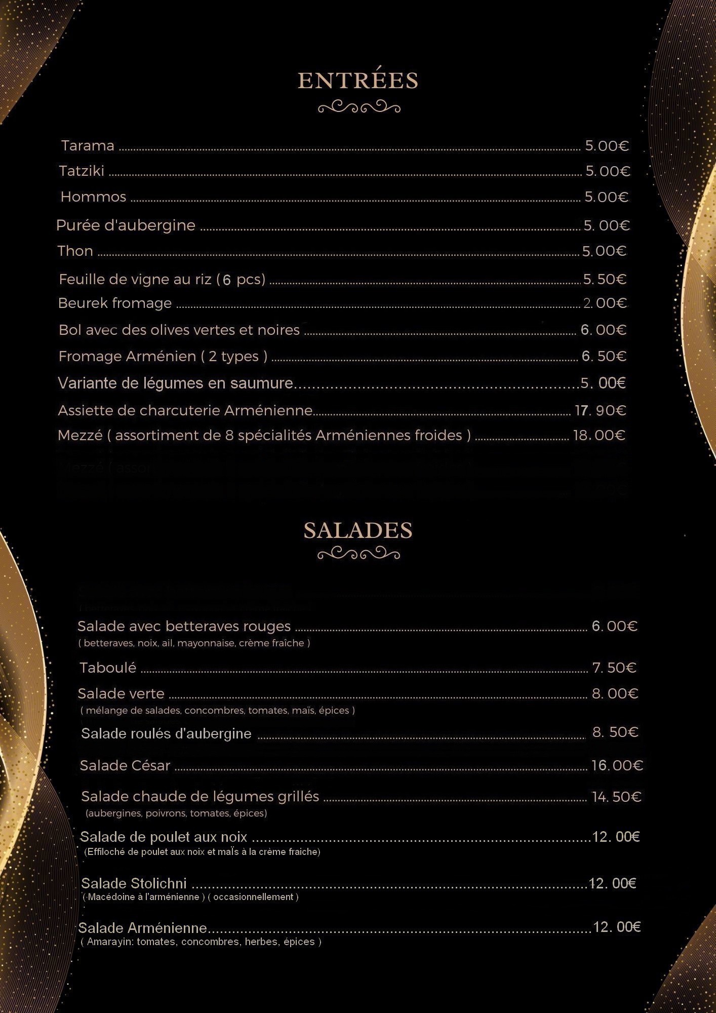 Envie d’un délicieux repas arménien ? Vous êtes à la bonne adresse. Au « DELICES D'ARMENIE », nous vous offrons des recettes délicieuses dans une ambiance agréable. nn Nous proposons aussi des plats halal à nos invités – donc tout le monde trouvera une spécialité à son goût. Nous voulons vous aider à faire attention à votre santé et vous sensibiliser à l’importance d’une alimentation saine et gourmande.nn Notre restaurant bien climatisé vous accueil pour passer un moment agréable quelle que soit la température extérieure.